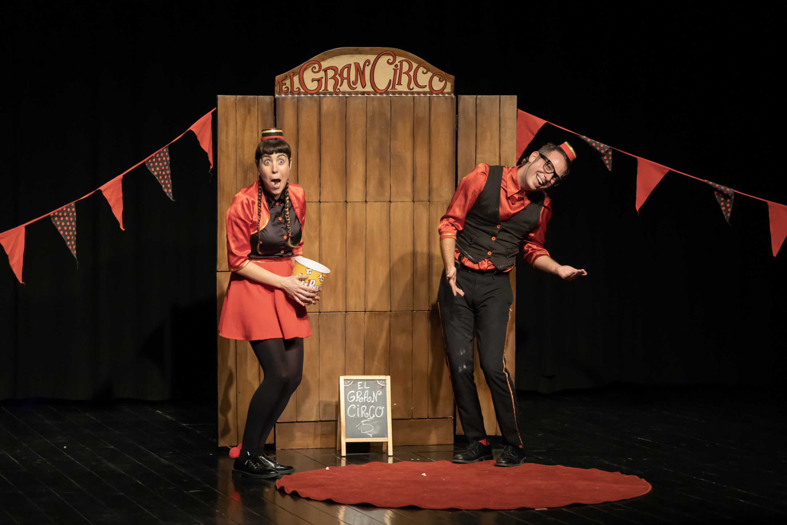 Les grans artistes estan a punt d’arribar. De camí a escena, amb un carro de fusta i creant cert rebombori, arriben en Jean Claude i la Rebeca, els acomodadors de El Gran Circ. Treballen perquè tot estigui llest i comenci la funció sense imprevistos. Però, què pot passar si les grans artistes no arriben a temps?
